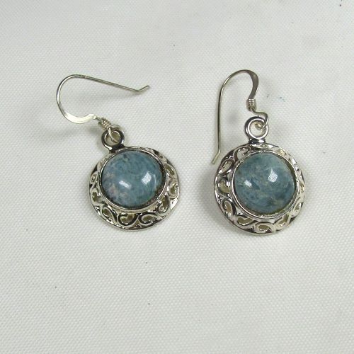 These delicate gemstone earrings feature blue jade from California set in a silver mounting. These handmade earrings are hung from sterling silver french ear wires for a 3/4 of an inch drop. Quite charming jade earrings. These California blue jade earrings offer a delicate drop earrings for the woman who wants a classic look in gemstone earrings.