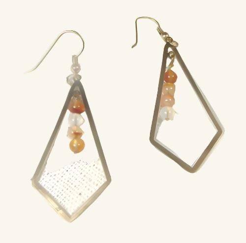 These Long and Dangling Carnelian Earrings feature Carnelian Beads framed with 1 3/4 inch 14KT gold filled pointed teardrop chandelier. These designer handmade earrings are hung from 14KT gold filled French ear wires. These Long and Dangling Carnelian Earrings are from the Crystal Collection Long and Dangling Earring Collection of fine handmade jewelry.