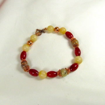 This Crazy Lace Agate and Copper Bracelet features 10mm Crazy Lace Agate, Copper and Caleite beads. A copper toggle clasp completes this handmade bracelet. This Crazy Lace Agate and Copper Bracelet is from the Copper Collection of fine handmade jewelry.
