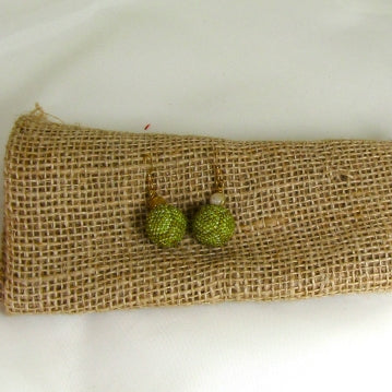 These Green and Gold Beaded Bead Earrings feature 18mm green and gold beaded beads and 6mm rutilated quartz crystal beads. These handcrafted beaded bead earrings drop 1 inch from 14k gold filled french ear wires.