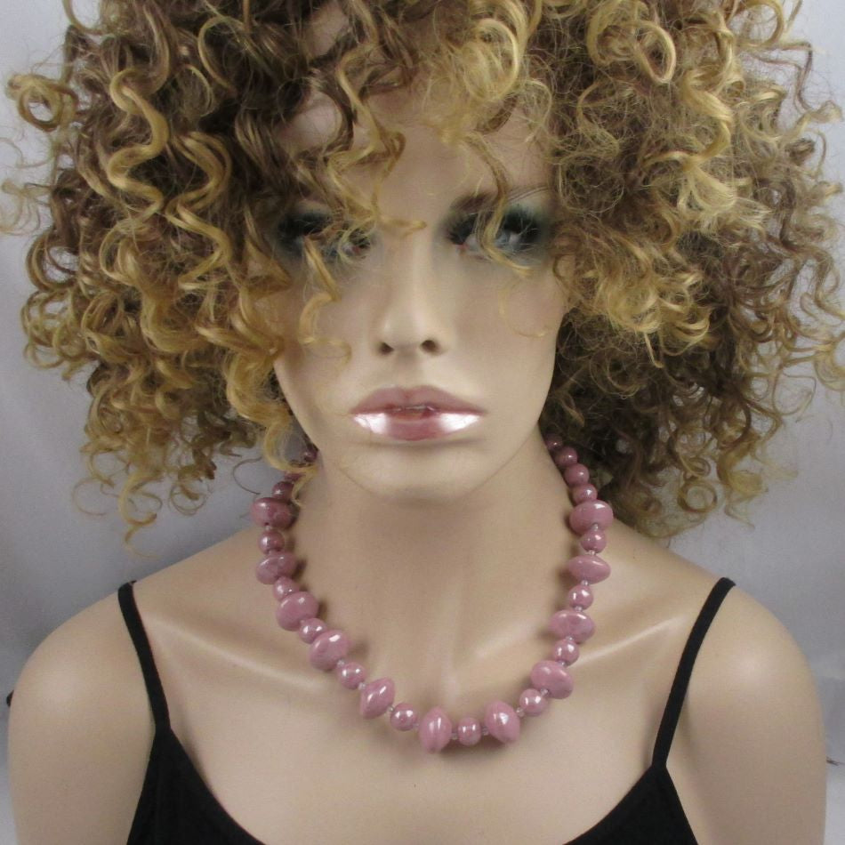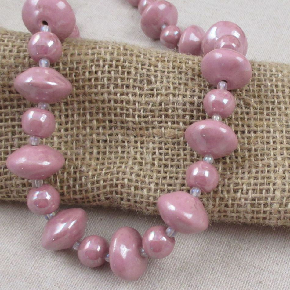 Classic Pretty Fair Trade Necklace. One-of-a-kind pink handmade fashion necklace made from clay from the Kenyan mountain, hand shaped, hand painted and fired by the women of the Kazuri Factory in Kenya. The purchase of this sophisticated necklace helps support the women of Kenya.