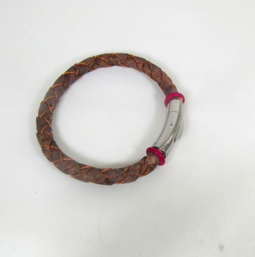 Braided 6mm leather, is featured in this braided man's bracelet. A silver plated magnetic clasp completes this 8 inch tobacco brown bracelet. Very classic look in a leather like man's braided bracelet. Not recommended getting wet.