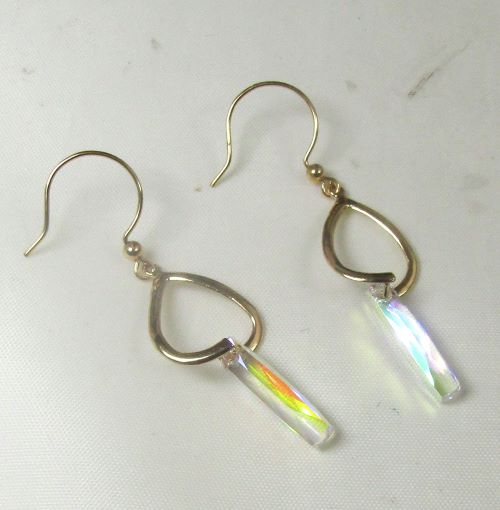 These Swarovski Crystal Earrings feature Swarovski Baguette Crystals paired with a gold drop. These handmade bead earrings are accented with 14K gold filled drop and hung from 14K gold filled french ear wires. These crystal earrings wear well as elegant evening wear or office attire depending on what you choose to pair them with.