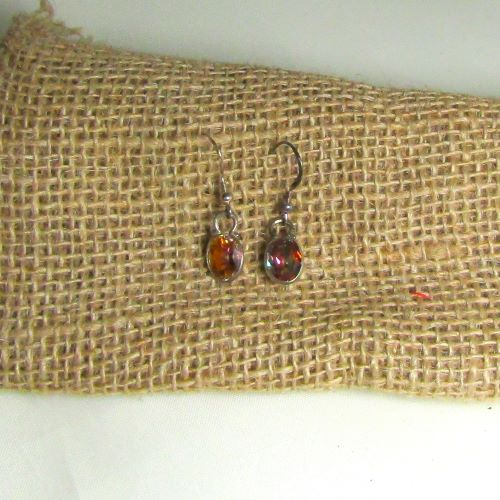 Two azatic topaz oval gemstones mounted in sterling silver are featured in these drop earrings. These handmade earring drop 3/4 of an inch from sterling silver french ear wires. Classic design. Great for the office.