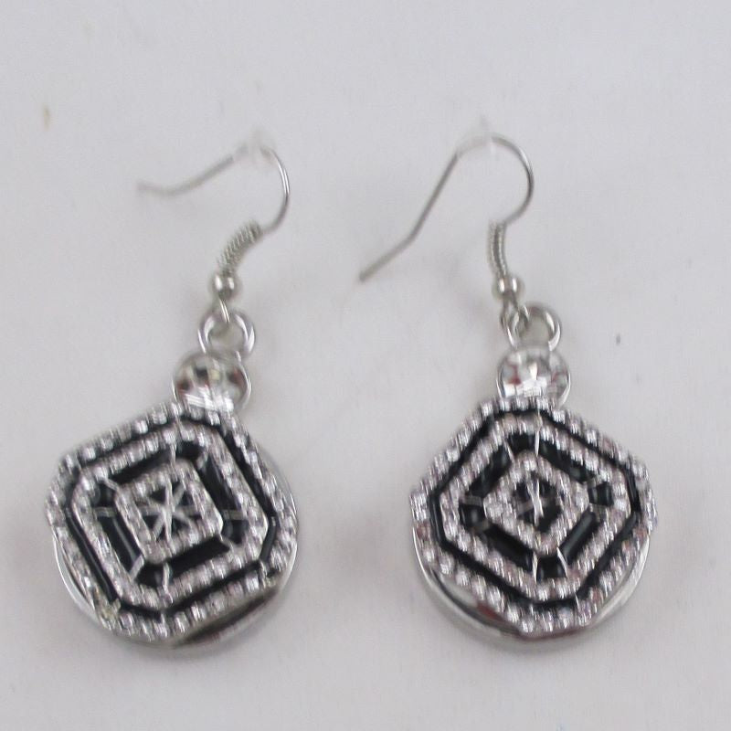 Multi-stone crystal earrings are hung on silver ear wires. These black & rhinestone earrings offer you an elegant look just right for any special occasion. These earrings earrings drop 3/4" from silver plated ear wires. Great choice for cruise wear.