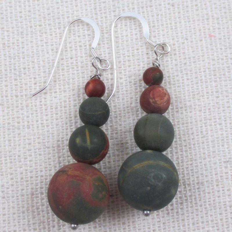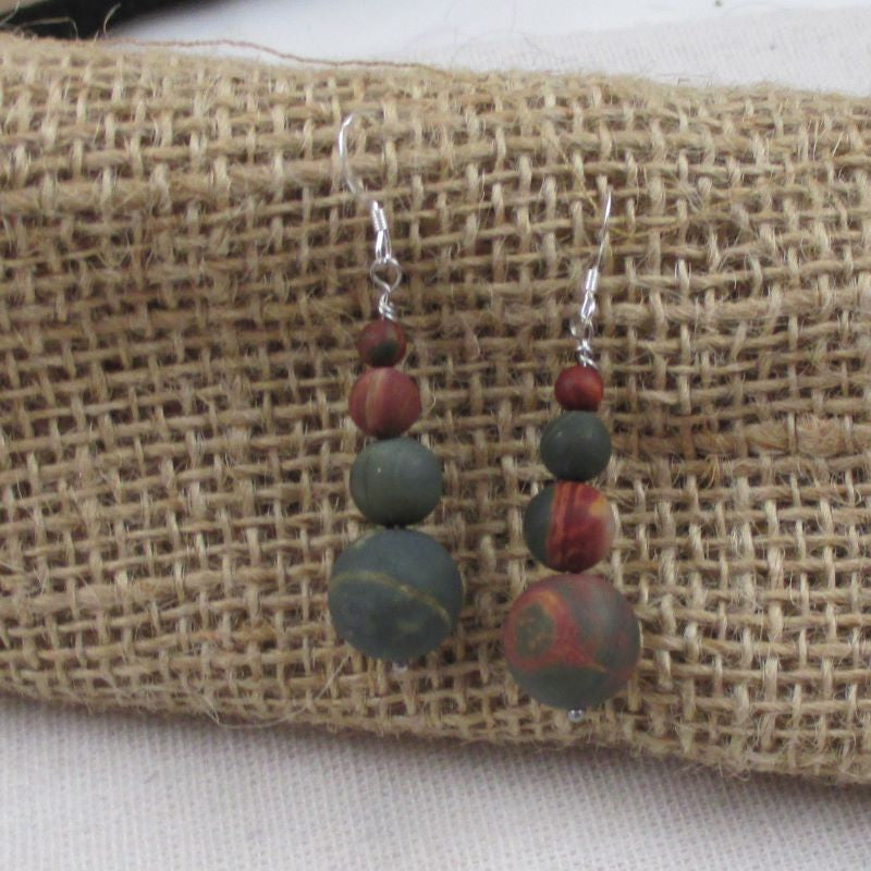 These fashionable gemstone red creek jasper earrings offer you the look and feel of fine handcrafted gemstone in a classic earrings. Pair these gemstone earring with our multi-strand red creek jasper necklace for a truly remarkable set