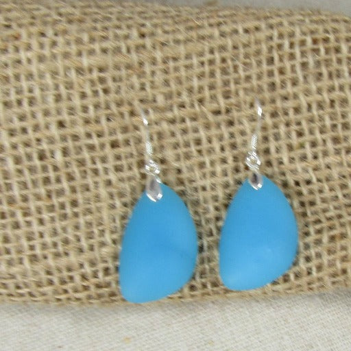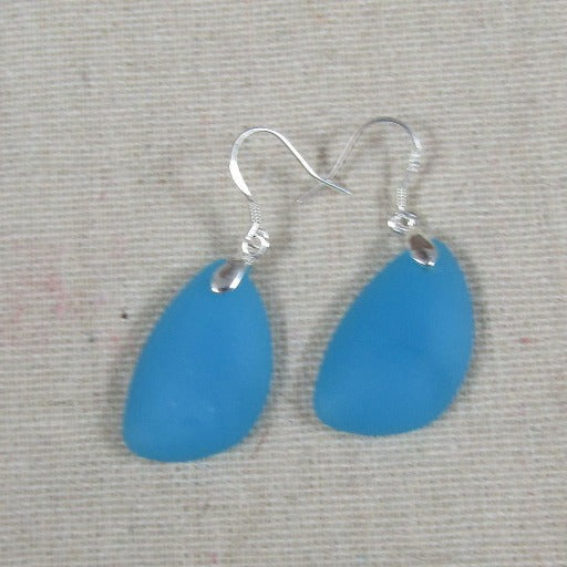 These earrings feature opaque blue opal sea glass  hung on silver ear wires. They drop 1 1/4". Classic look for any occasion, Pretty Rich Blue Color