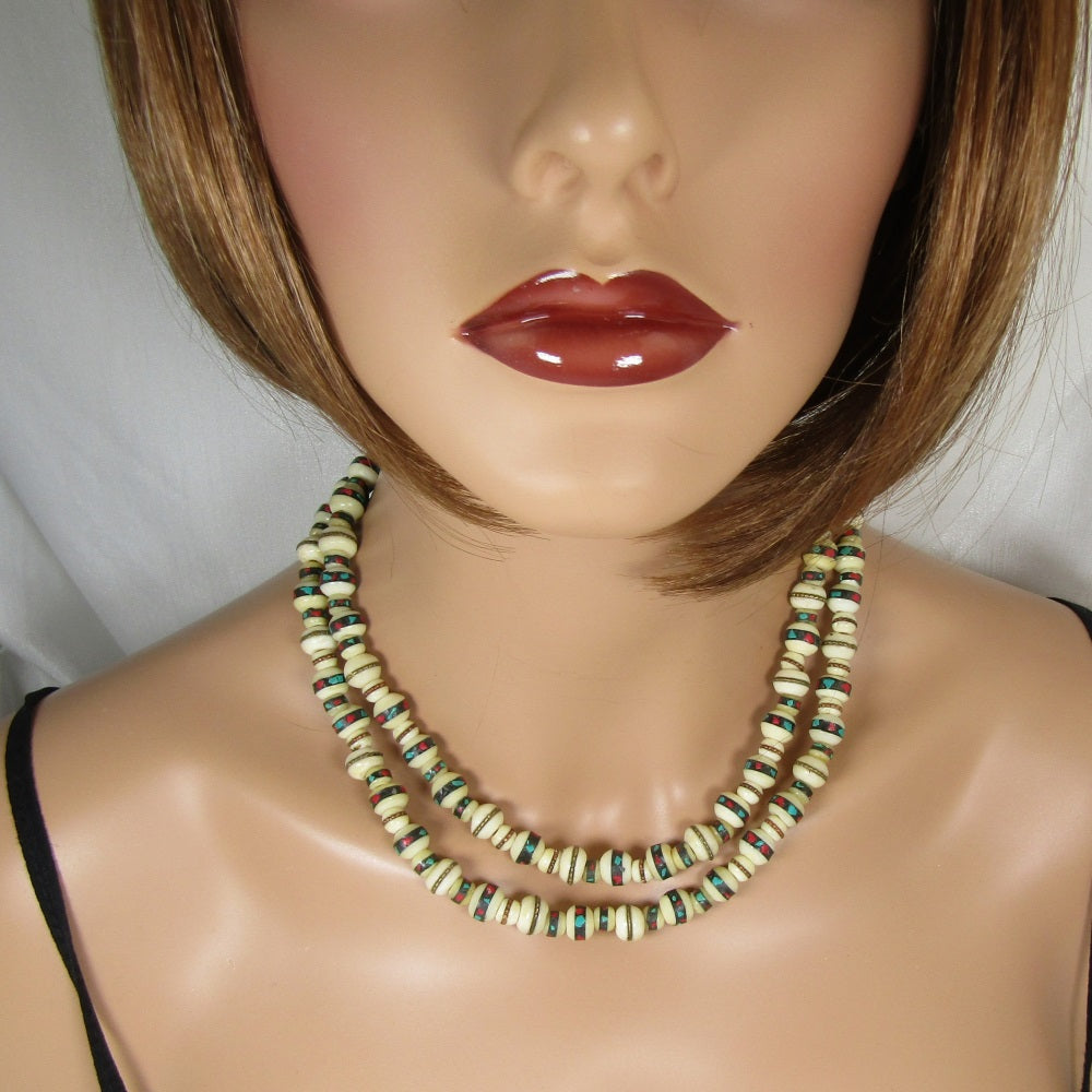 African trade bead necklace. Great choice for the office or lunch with friends when you want that bold daring look. Handmade in USA. Exclusive