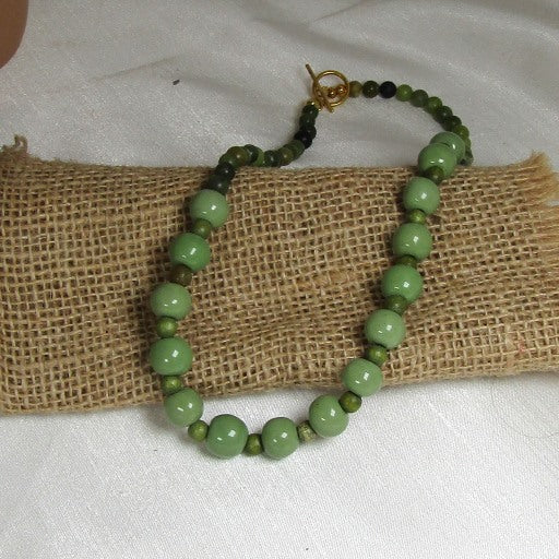 Wrap yourself in a classic style with this Fair Trade Kazuri Necklace! Featuring the beauty of nature in an olive green beaded design, This necklace will elevate your look to entirely new heights. It's a perfect way to express your commitment to global sustainability and the power of green!