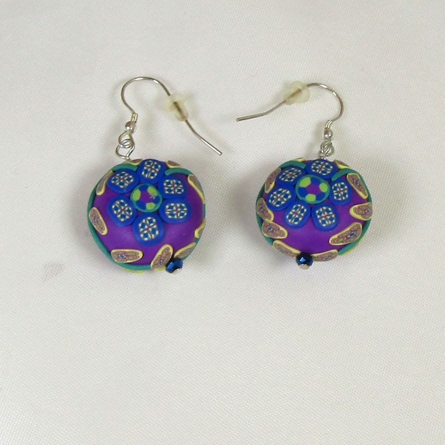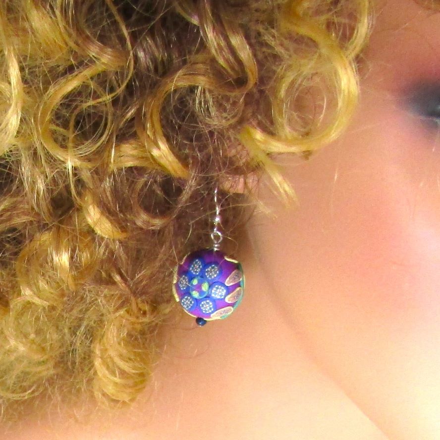 These unique handmade funky earrings feature 25mm Samunnat polymer clay beads from Nepal are very special hand crafted one-of-a-kind beads from a Non-governmental organization that provides assistance for Nepal's woman seeking escape from domestic violence or trafficking. Part of the program teaches them the art of creating beautiful polymer clay beads. These earring drop 1 inch from sterling silver french ear wires. Help support the ladies of Samunnat with a purchase of these unique earrings. Social Conscience jewelry is always a good choice.