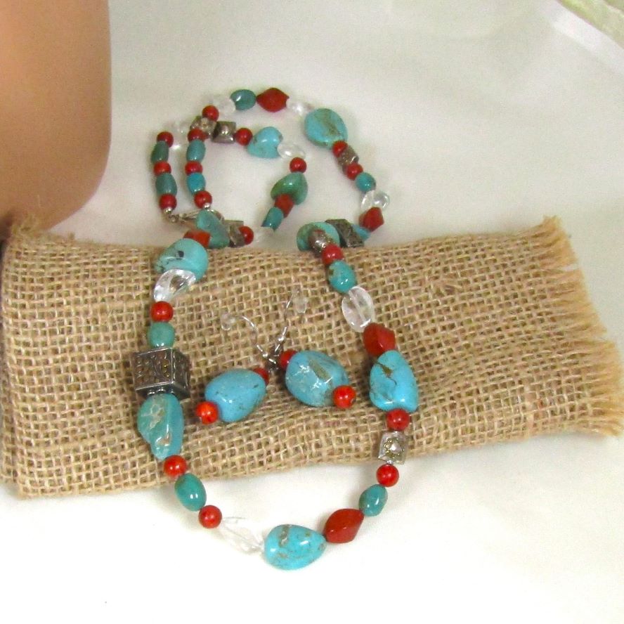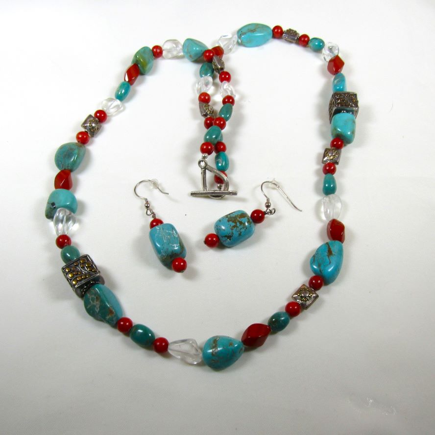 Feel captivating and elegant wearing this finely crafted, shimmering set of jewelry. Transform your look and make a statement with this one-of-a-kind classic turquoise set!