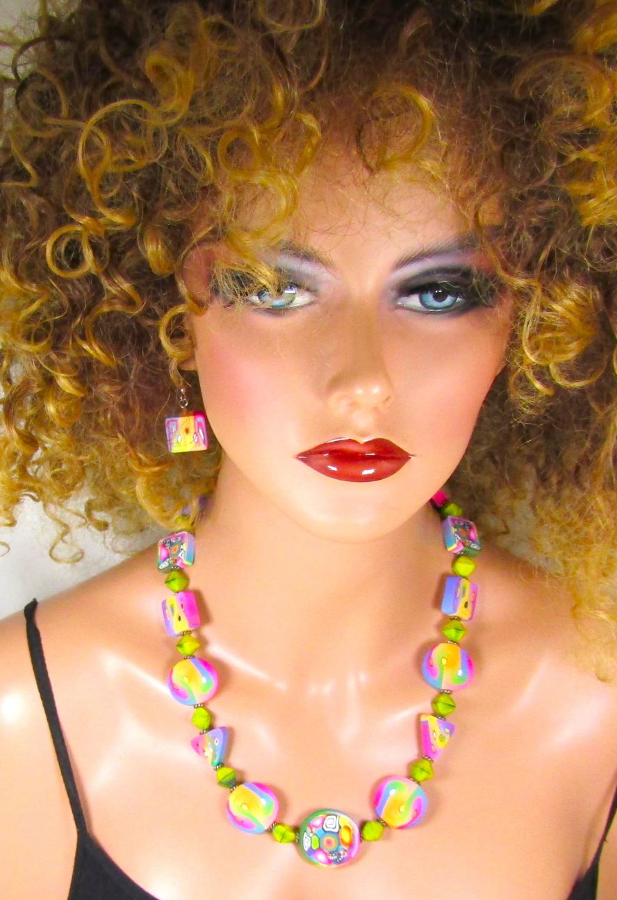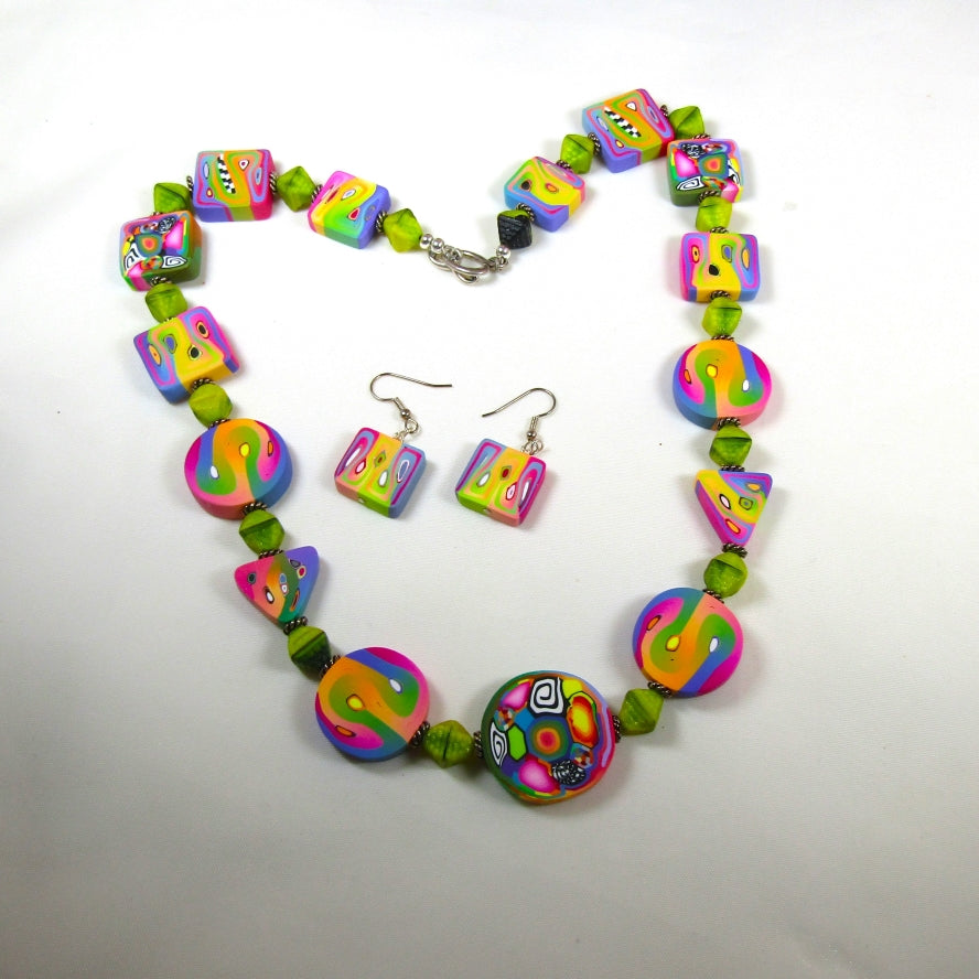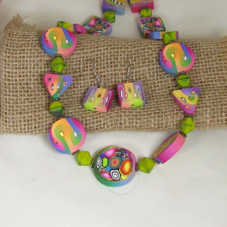 Add a vibrant burst of color to any ensemble with this beautiful Colorful Artisan Polymer Clay Bead Necklace & Earrings set. Perfect for everyday wear, it's also sure to make a statement at special occasions. Enjoy the irresistible charm of these irresistible handmade beads in a variety of shapes and colors!.