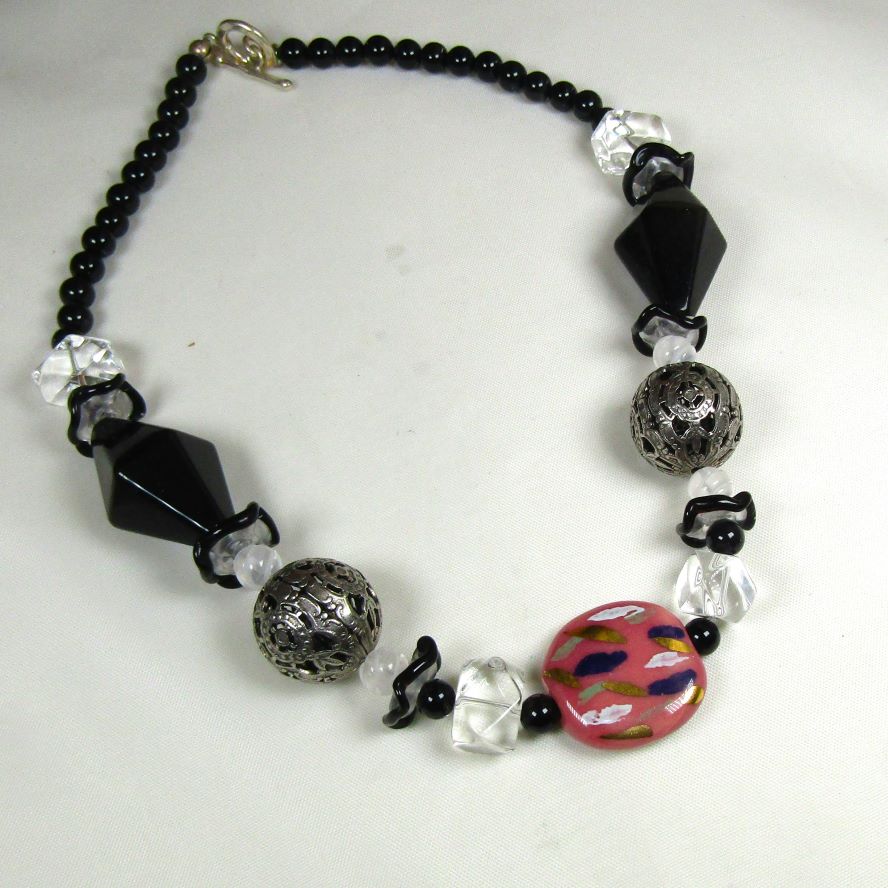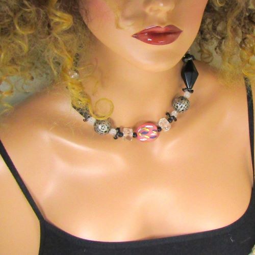Fall in love with this statement necklace crafted for modern elegance. Featuring a uniquely designed Onyx and Crystal pendant, this piece is sure to make a stylish addition to your jewelry collection. Exude luxury with this timeless necklace.