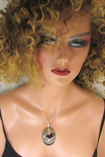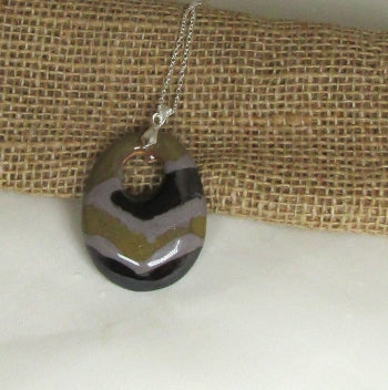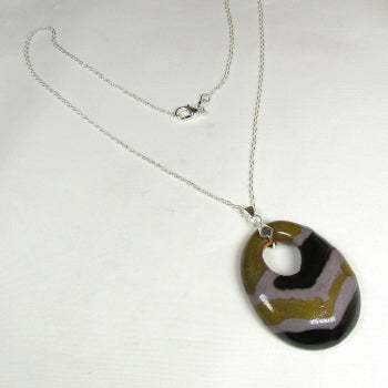 Handmade Fair Trade Brown Oval Pendant on silver chain necklace
