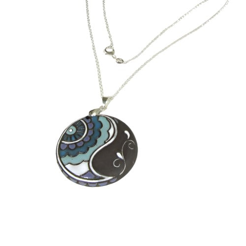 Elevate your style with this stunning handmade Grey, Aqua & White Artisan Bead Pendant Necklace. The intricate grey floral pendant adds a touch of elegance and uniqueness to any outfit. Let the beautiful artisan craftsmanship of this necklace make a statement and stand out from the crowd.