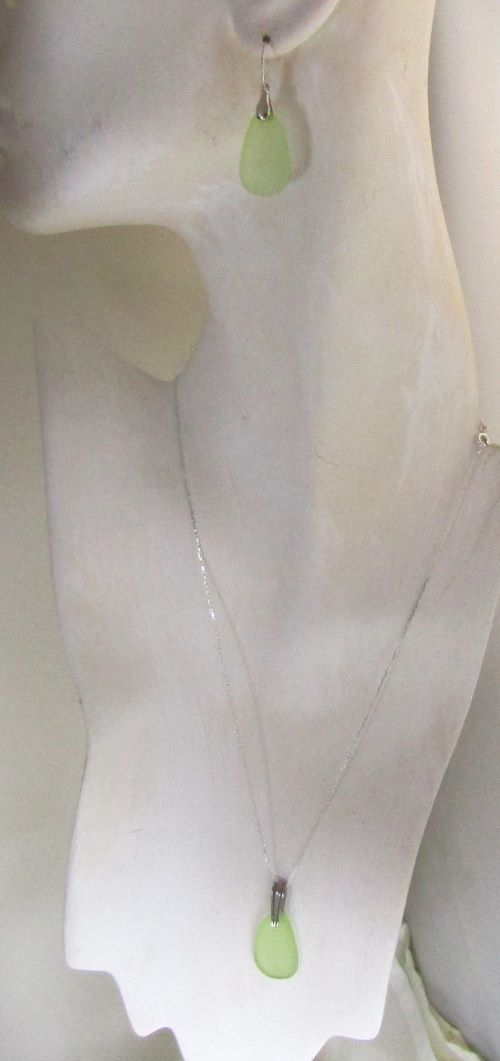 Add a pop of color to your outfit with our Lime Green Sea Glass Pendant & Earrings set! Made with light green sea glass, this designer set is perfect for adding a touch of unique charm to your look. Stand out from the crowd with this playful and quirky addition to your jewelry collection.