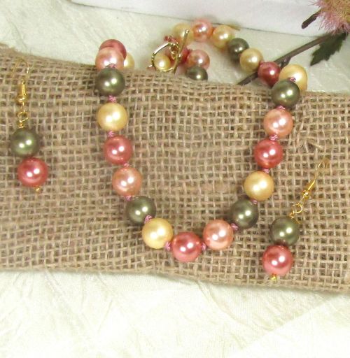 Multi-colored Shell Peart Necklace & Earrings