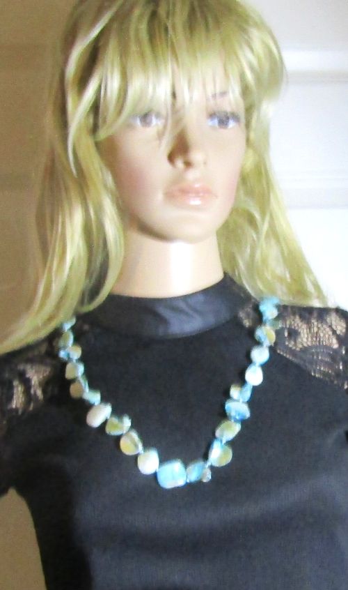 This charming necklace boasts a rustic sky blue pearl, adding a unique touch to any outfit. Perfect for those who want to add a little whimsy to their wardrobe, this necklace is sure to make a statement. (Pearl-perfect for showing off your one-of-a-kind style!)